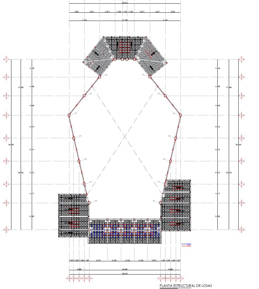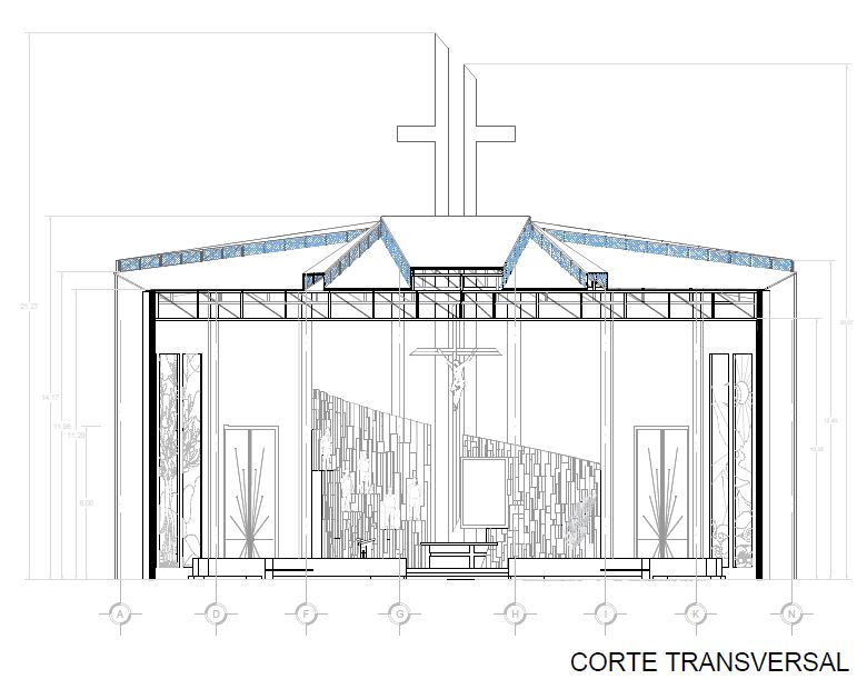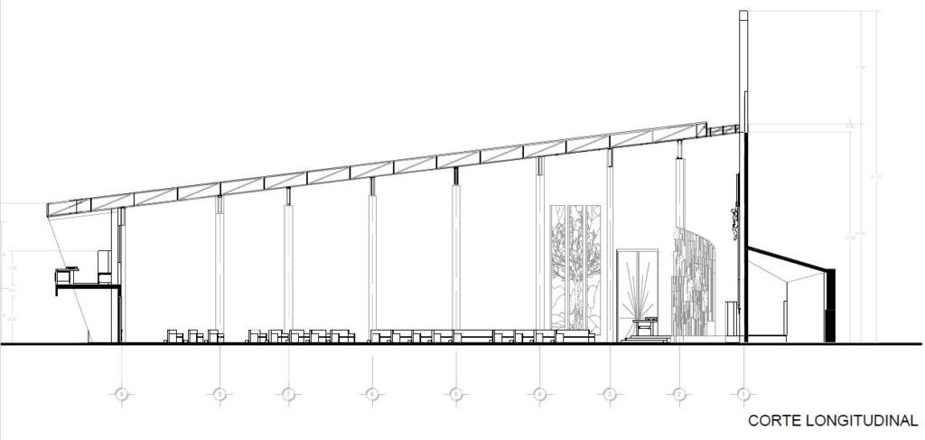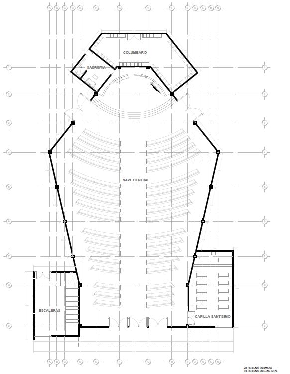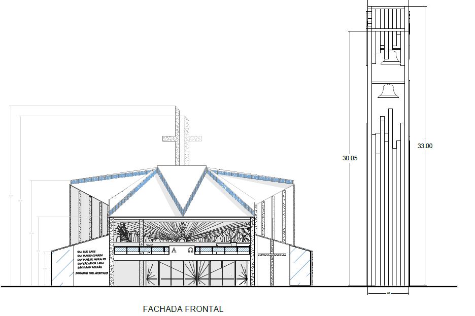 El área total del complejo es de 1023 M2, la cual está compuesta por una nave central con una capacidad para 285 personas sentadas y en su máxima ocupación 745 personas de pie, una sacristía, una capilla para el santísimo sacramento, un área administrativa; en la cual se encuentran las escaleras que permiten el acceso al mezzanine exterior, mismo que funge como altar para las celebraciones multitudinarias que se lleven a cabo en las plazoletas exteriores, un campanario de 33 m de altura, el cual pareciera fragmentarse en su punto más alto y conservar su firmeza e integridad en su base , haciendo alusión a los Santos Mártires que pareciera que logran arrebatarles su fe, sin embargo está se mantiene firme en Cristo; al término de la nave se ubica el columbario pensado para edificarse en etapas posteriores.