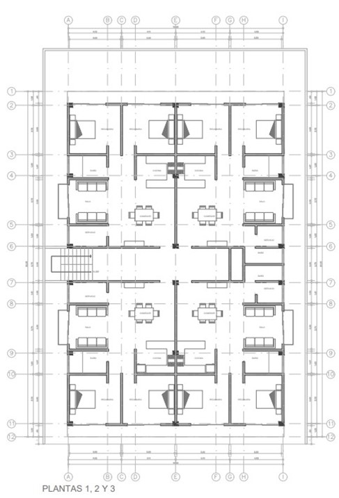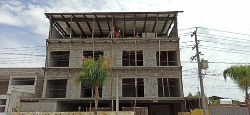 Planeación y edificación de edificio de 4 niveles, en la planta baja se encuentra, el estacionamiento, cuarto de servicio, y dos locales comerciales cada uno con bodega y medio baño, del primer nivel al segundo se encuentran cuatro apartamentos de 100 m2 cada uno, por nivel, cada apartamento consta de sala, comedor, cocina, cuarto de servicio, baño, recamara, recamara principal con baño y terrazas. En el tercer nivel se encuentran cuatro apartamentos de 100 m2 cada uno, en cada apartamento cuenta con sala, comedor, cocina, cuarto de servicio, baño, recamara principal con baño y estudio con opción de convertir este en segunda recamara. Cuenta con palapas, asadores y w.c.