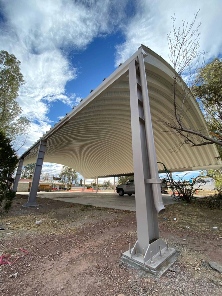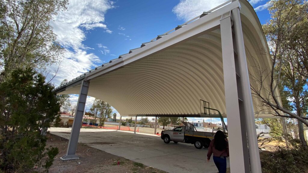Ejecución de domo en la Escuela Primaria Fco. Villa, concebido como un espacio de protección y uso multifuncional para la comunidad escolar. El proyecto se resuelve mediante una estructura ligera y resistente que cubre amplias áreas, favoreciendo la ventilación y la iluminación natural, permitiendo el desarrollo de actividades cívicas, deportivas y recreativas en un entorno seguro y confortable.